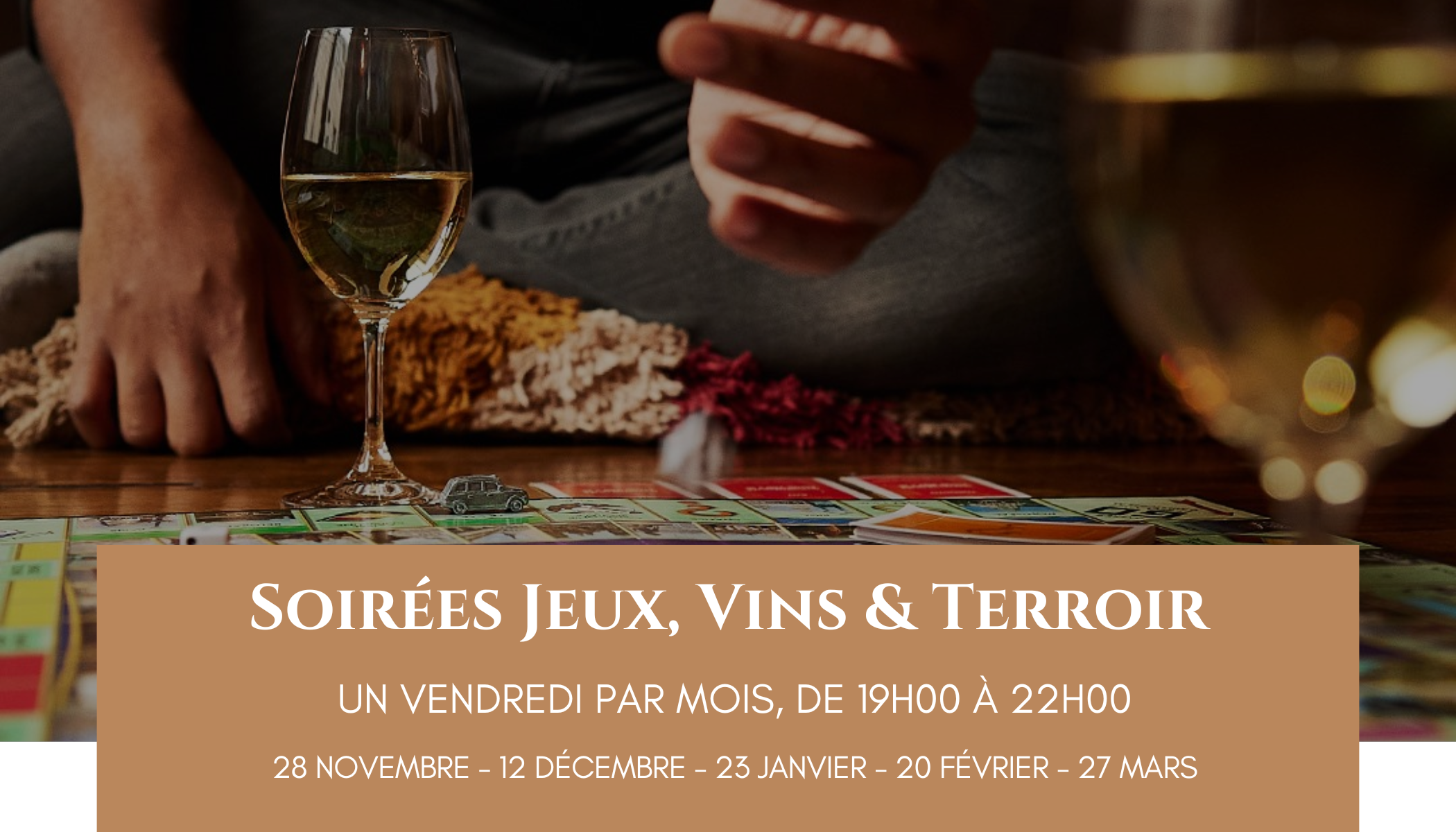 - 28 novembre 2025 et 23 janvier 2026 : Oenolympiades – Jeux de cartes revisités, des classiques adaptés à la thématique du vin pour allier réflexion et amusement.